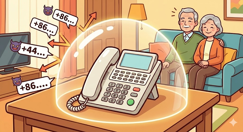 この手続きをすると、海外からの電話がかかってきても、電話機が鳴ることなく自動的に遮断されます。 「呼び出し音が鳴らない」というのが最大のポイントです。ご両親が不用意に電話に出てしまうリスクを、根本から断つことができます。