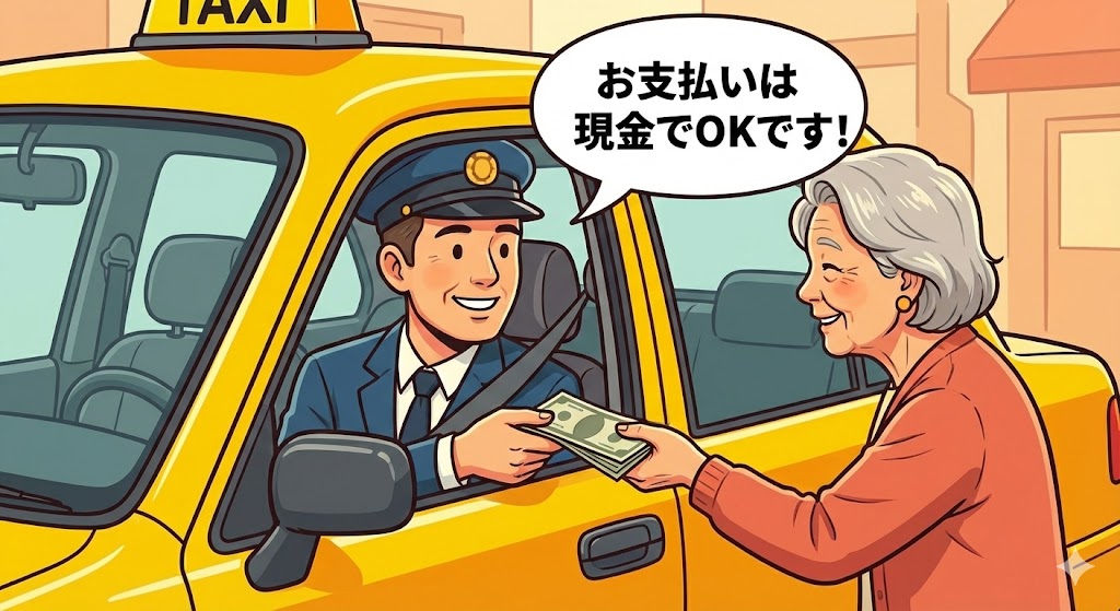 これはつまり、「お支払いは、これまで通りタクシーを降りる時に、現金(またはPayPayなどの対応している決済方法)で払えばOK」ということです。