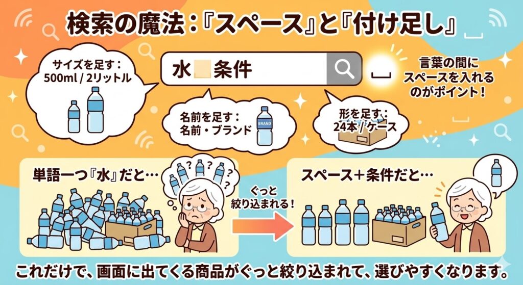 Amazonで「水」とだけ打っていませんか?初心者でも「欲しいもの」がすぐ見つかる検索のコツ✨