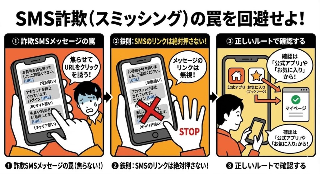 それは、 「メールやSMSのリンクは、絶対に押さない」 これだけです。