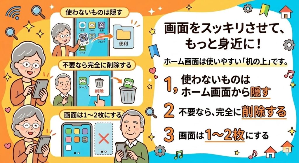 まとめ:画面をスッキリさせて、スマホをもっと身近に!