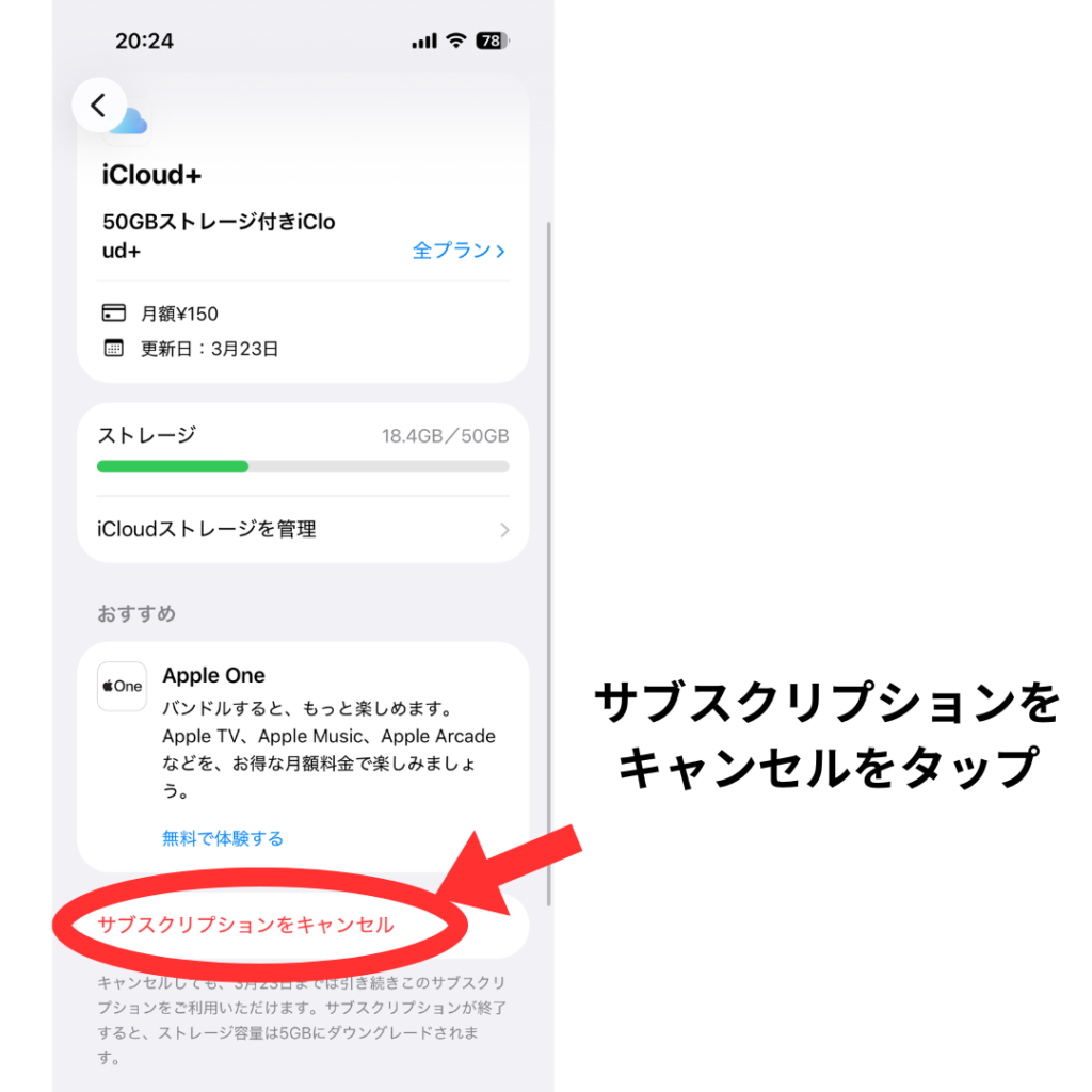 • iPhoneもAndroidも、設定画面から簡単に確認・解約できる