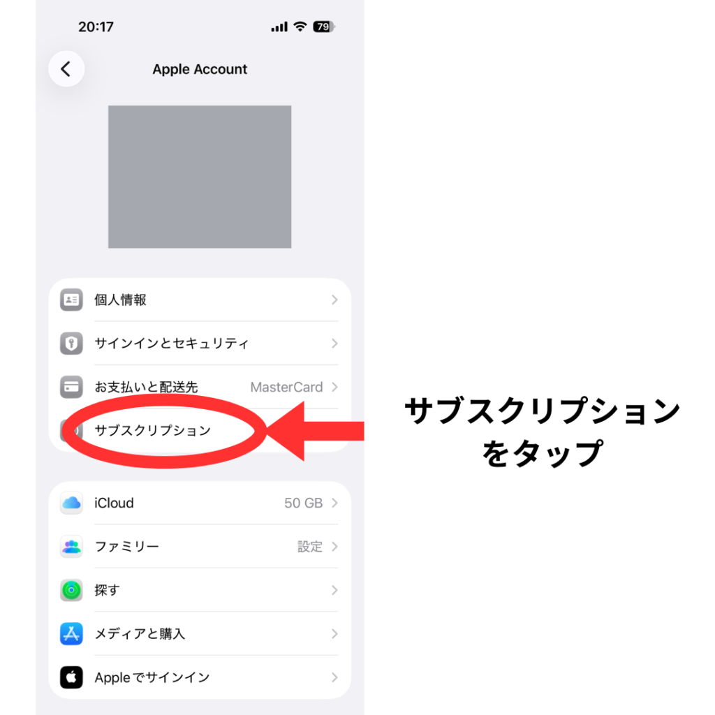 3. 「サブスクリプション」という項目を押します。