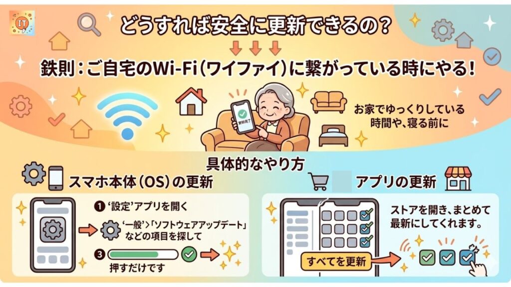 「更新のお知らせ」が来たら、ぜひ今日から前向きに対応してみてくださいね。それだけで、あなたのスマホライフはもっと安全で快適になりますよ!